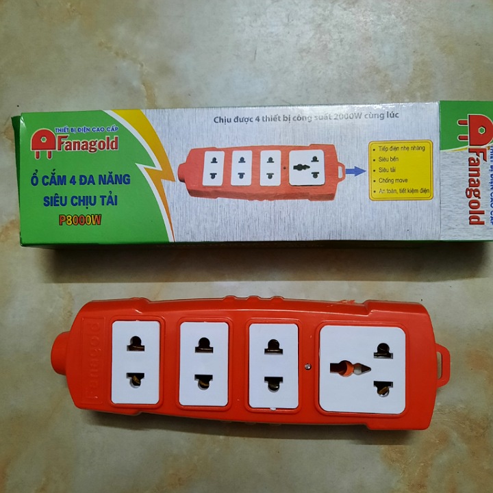 Thiết Bị Điện Gia Dụng > Mạch điện & Phụ tùng > Ổ cắm điện & Dây nối || Ổ cắm điện 4 lỗ lõi sứ chống cháy cao cấp FANAGOLG-8000W siêu chịu tảiCòn hàng