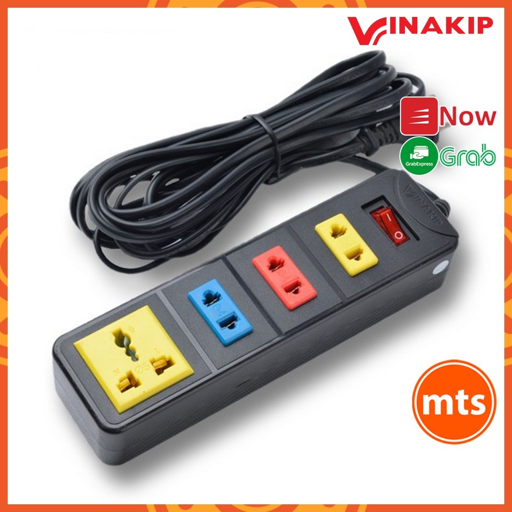 Ổ cắm điện 4 ngả liền dây N13 Vinakip dây dài 2.5 - 5m nhíp đồng có công tắc đóng mở đèn báo tiện lợi - Minh Tín Shop