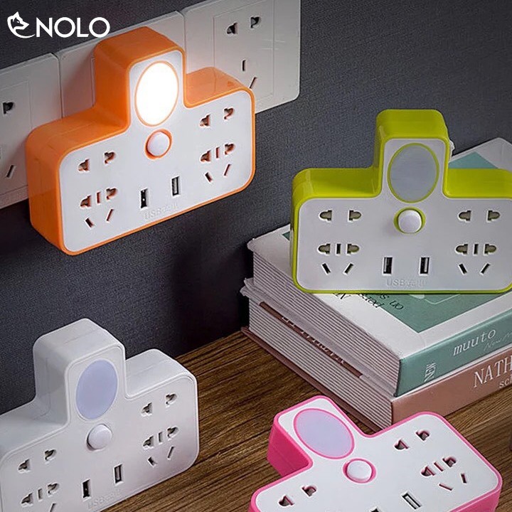 Ổ Cắm Điện 4 Phích Cắm 2 Cổng USB Kết Hợp Đèn Model T03 Có Công Tắc Độc Lập Cho Đèn Và Phích Cắm Chất Liệu Nhựa PC Nhựa ABSGiới thiệu: