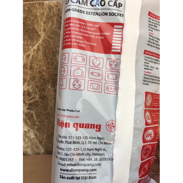Thiết Bị Điện Gia Dụng > Mạch điện & Phụ tùng > Ổ cắm điện & Dây nối || Ổ cắm điện 5m, chịu tải, chịu nhiệt 2500W - 4000W cao cấp Điện QuangCòn hàng