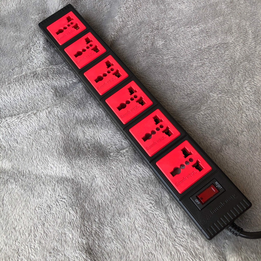 - 6 lỗ cắm đa năng đều được thiết kế theo Công nghệ Extra Power, tăng khả năng đàn hồi cho lỗ cắm, tương thích với mọi tiêu chuẩn phích cắm ( dễ dàng cắm vừa các loại phích 3 chân , 3 chân chéo, chân dẹt, chân tròn....)