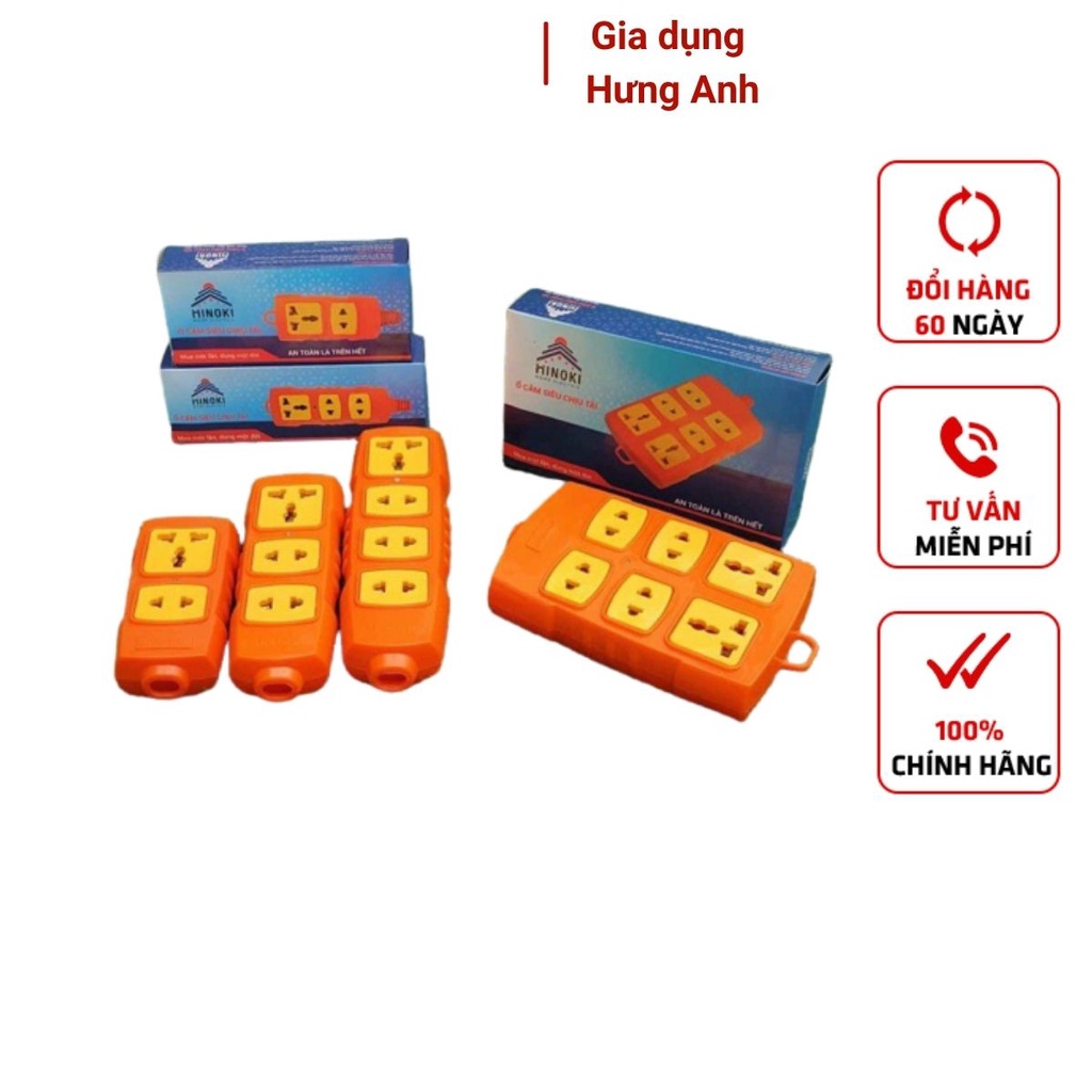 Ổ Cắm Điện 6 Lỗ Siêu Chịu Tải 6000w Chống Va Đập An Toàn - Phích Cắm Siêu Chịu TảiỔ Cắm Chịu Tải HiNoKi 6000w