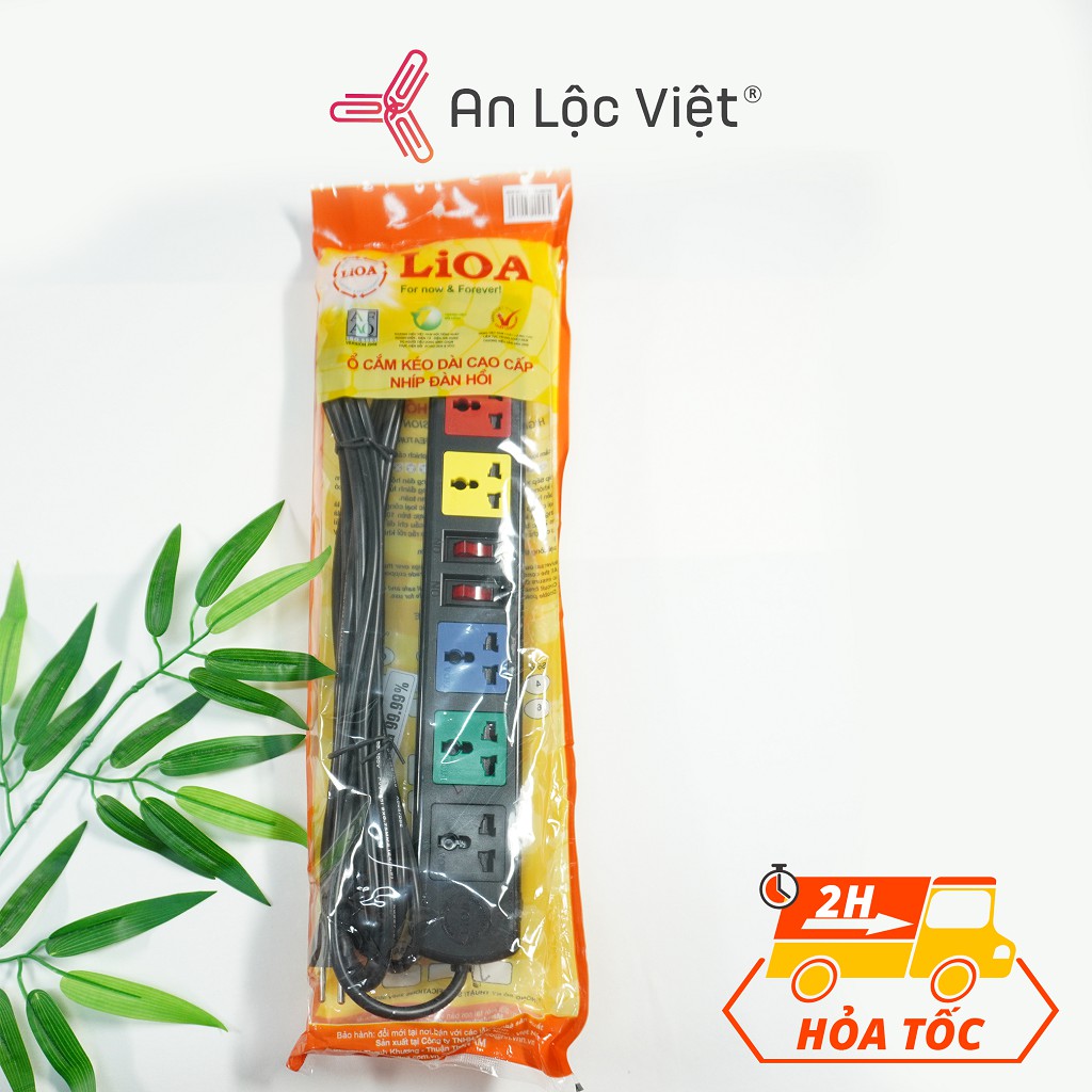 - Ổ cắm điện Lioa có 6 lỗ cắm 3 chấu dây dài 5m (2 công tắc) đa năng giúp cắm được mọi loại phích cắm, nhíp tiếp xúc bằng đồng không lỏng lẻo và có độ bền cao.