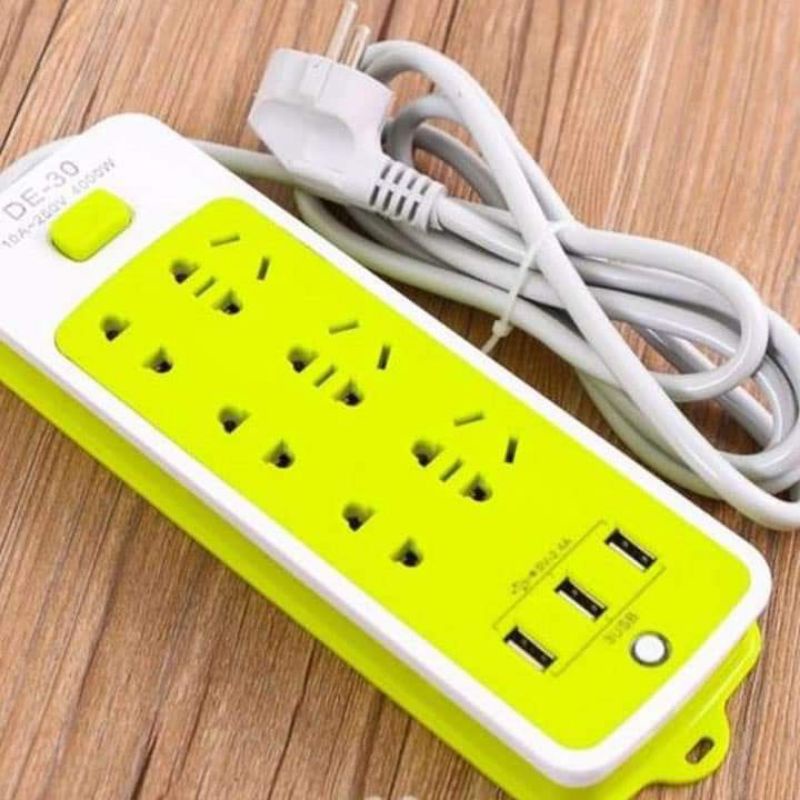 Thiết Bị Điện Gia Dụng > Mạch điện & Phụ tùng > Ổ cắm điện & Dây nối || Ổ CẮM ĐIỆN 6 PHÍCH CẮM, 3 CỔNG USB XANHCòn hàng