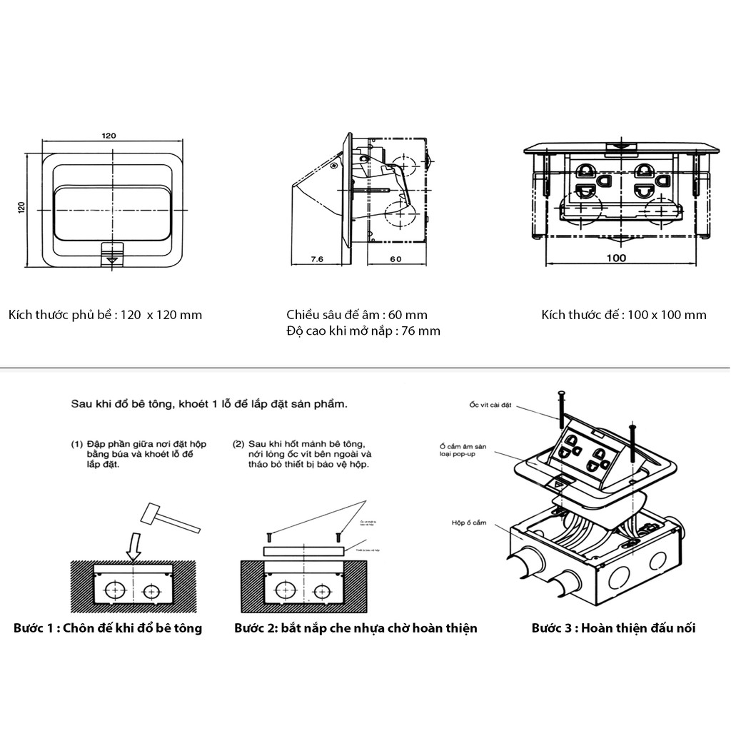 *Kích thước chôn đế : 10 x 10 x 5cm