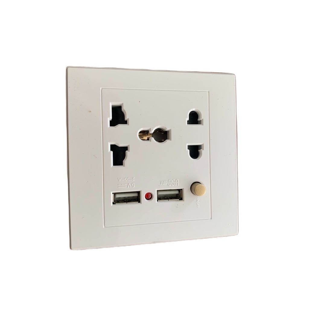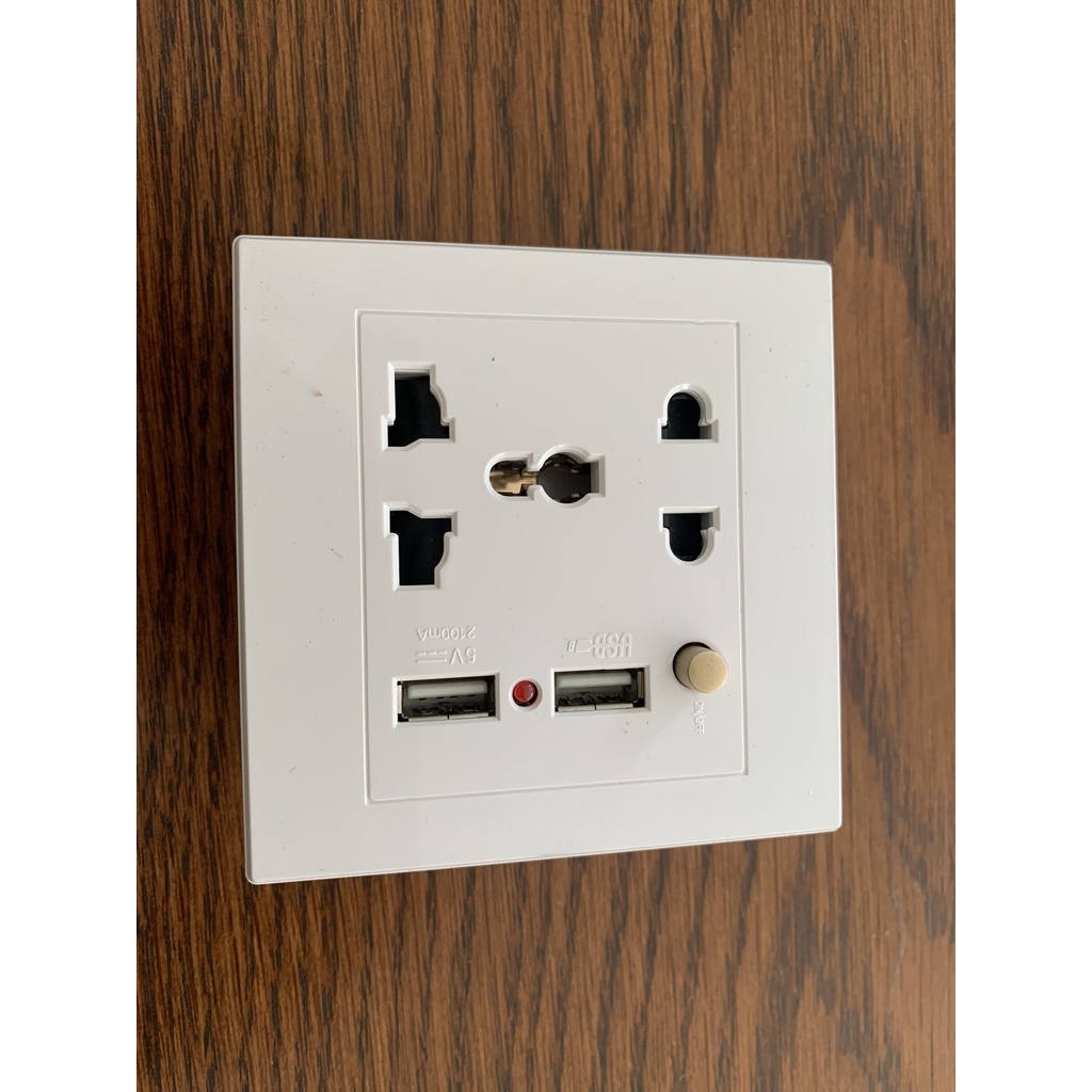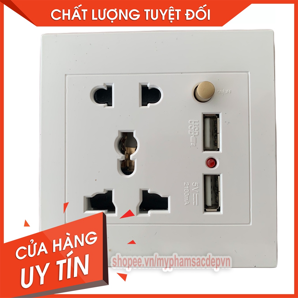 ổ cắm đện đa năng âm tường 2 chấu kiêm 2 cổng USB 2A có công tắc bật tắt nguồn.