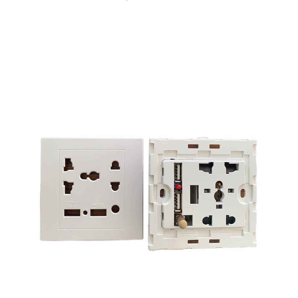Ổ cắm điện âm tường mặt vuông, có 2 lỗ cắm USB