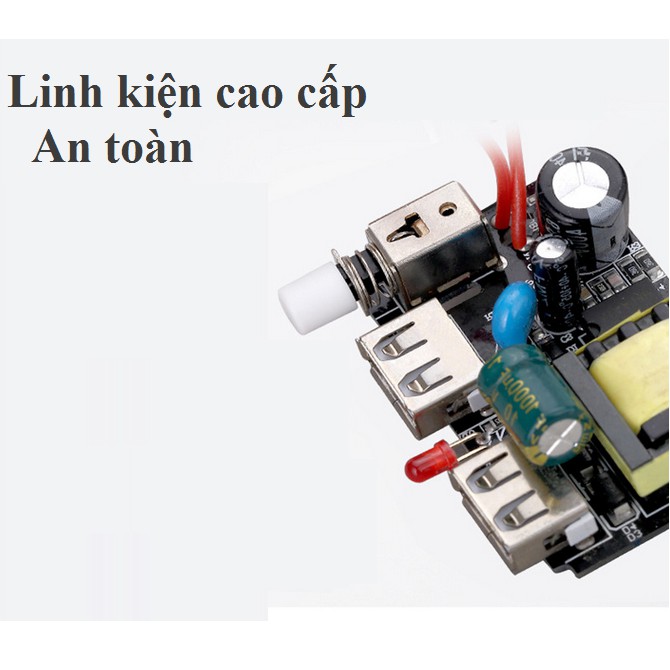 Được tích hợp 2 cổng USB 2A giúp bạn sạc điện thoại máy tính bảng ở bất cứ nơi đâu, quên đi nỗi lo về quên sạc.