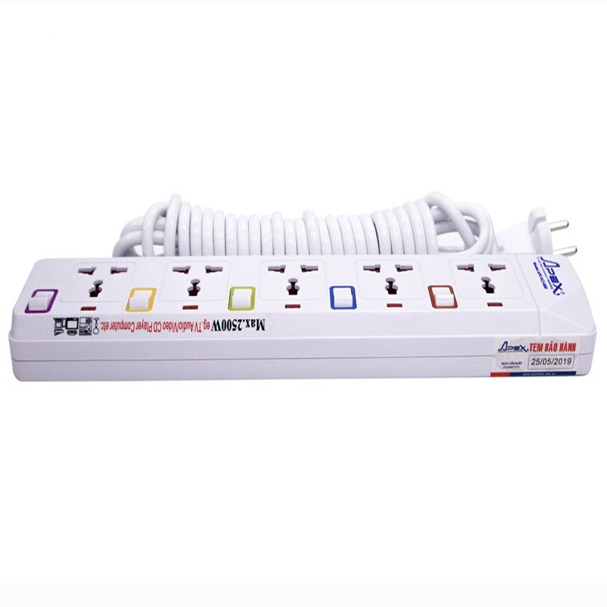 Thiết Bị Điện Gia Dụng > Mạch điện & Phụ tùng > Ổ cắm điện & Dây nối || Ổ cắm điện Apex APE OC2-5RD 5 Lỗ, 5 công tắc, 2500W, dây dài 4.5m - Chính hãng SunhouseCòn hàng
