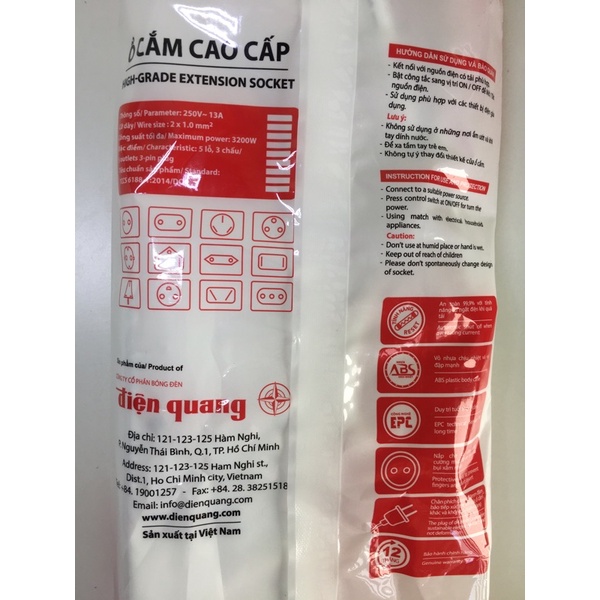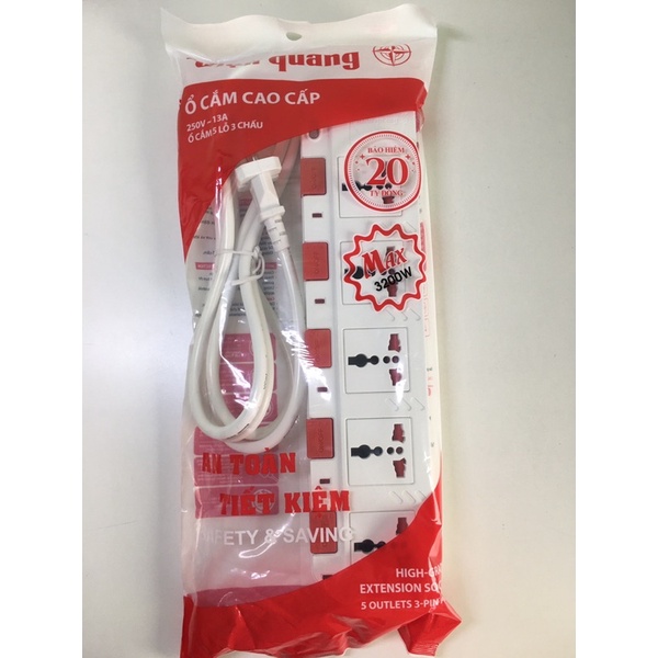 Thiết Bị Điện Gia Dụng > Mạch điện & Phụ tùng > Ổ cắm điện & Dây nối || Ổ Cắm Điện Cao Cấp Điện Quang 5 lỗ 5 công tắc, 5 lỗ đa năng, 3 chấu, màu đỏ trắng, chịu nhiệt, chịu tải.Còn hàng
