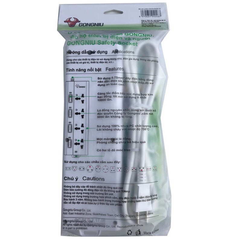 - Ổ cắm điện Gongniu là ổ cắm đa năng có thể cắm được cho phích cắm dẹp lẫn phích cắm tròn.