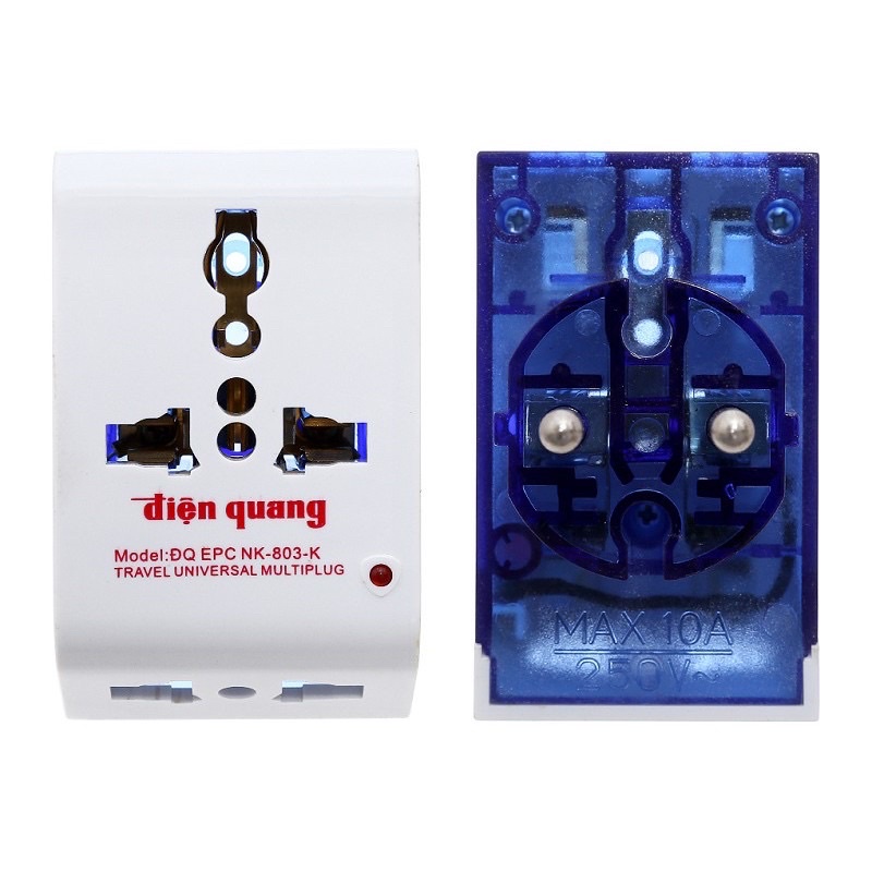 Thiết Bị Điện Gia Dụng > Mạch điện & Phụ tùng > Ổ cắm điện & Dây nối || Ổ cắm điện chia 3 lỗ Điện Quang, Phích cắm chuyển Điện Quang đa chiều EPC NK 803- KCòn hàng