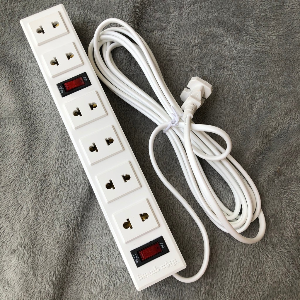 Thiết Bị Điện Gia Dụng > Mạch điện & Phụ tùng > Ổ cắm điện & Dây nối || Ổ cắm điện chịu nhiệt Điện Quang 6 lỗ chịu tải 3200w - Dây dài 5 métCòn hàng