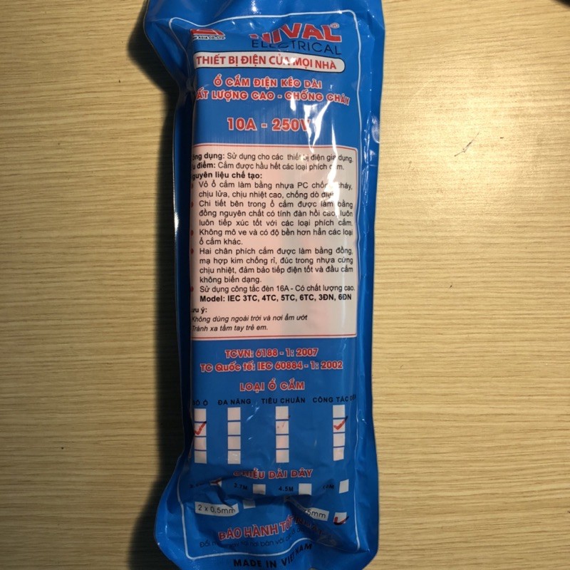 * TÊN SẢN PHẨM: Ổ cắm điện kéo dài chống cháy Nival 4 ổ 1 công tắc* THÔNG TIN SẢN PHẨM