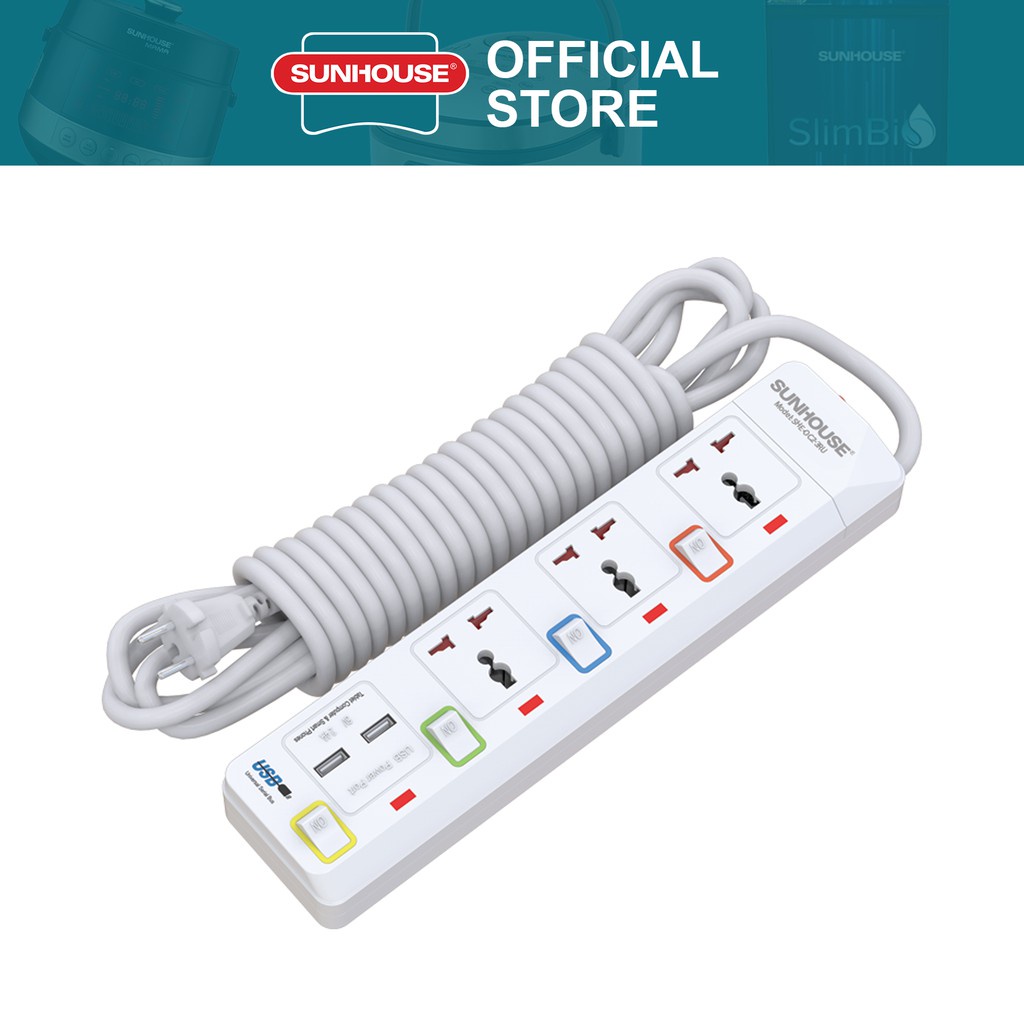 Thiết Bị Điện Gia Dụng > Mạch điện & Phụ tùng > Ổ cắm điện & Dây nối || Ổ cắm điện chịu tải Sunhouse có lỗ cắm sạc usb - Bảo hành 12 thángCòn hàng