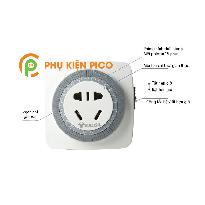 - Thông số kỹ thuật ổ cắm điện hẹn giờ Bull:
