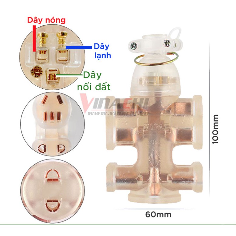 Sản phẩm có 3 ốc vặn nắp, 1 trên 2 dưới, vừa an toàn cân đối lại vừa giúp nắp phích cắm vào dây nguồn cực chắc ko thể tuột dây.