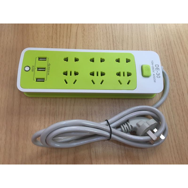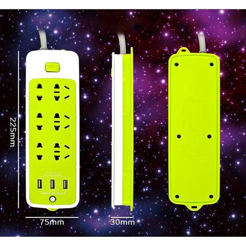Ổ CẮM ĐIỆN CHỐNG GIẬT KÈM CHÂN CẮM USB XANH LÁ✔ 3 cổng sạc USB ✔ 6 ổ cắm tròn ✔ 3 ổ cắm 3 chân