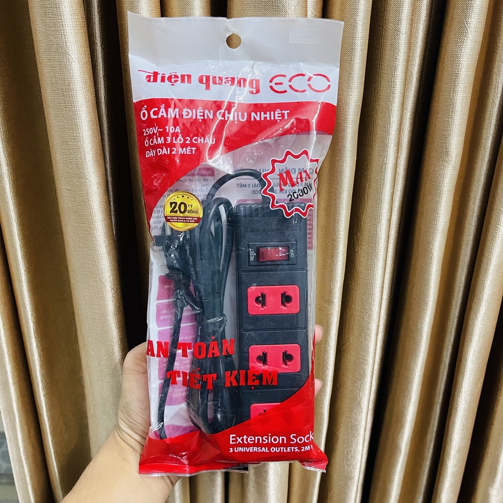 Thiết Bị Điện Gia Dụng > Mạch điện & Phụ tùng > Ổ cắm điện & Dây nối || Ổ cắm điện có dây Điện Quang ECO ĐQ ESK 32 ECO (3 lỗ 2 chấu,1 công tắc) dây 2m, 5mCòn hàng