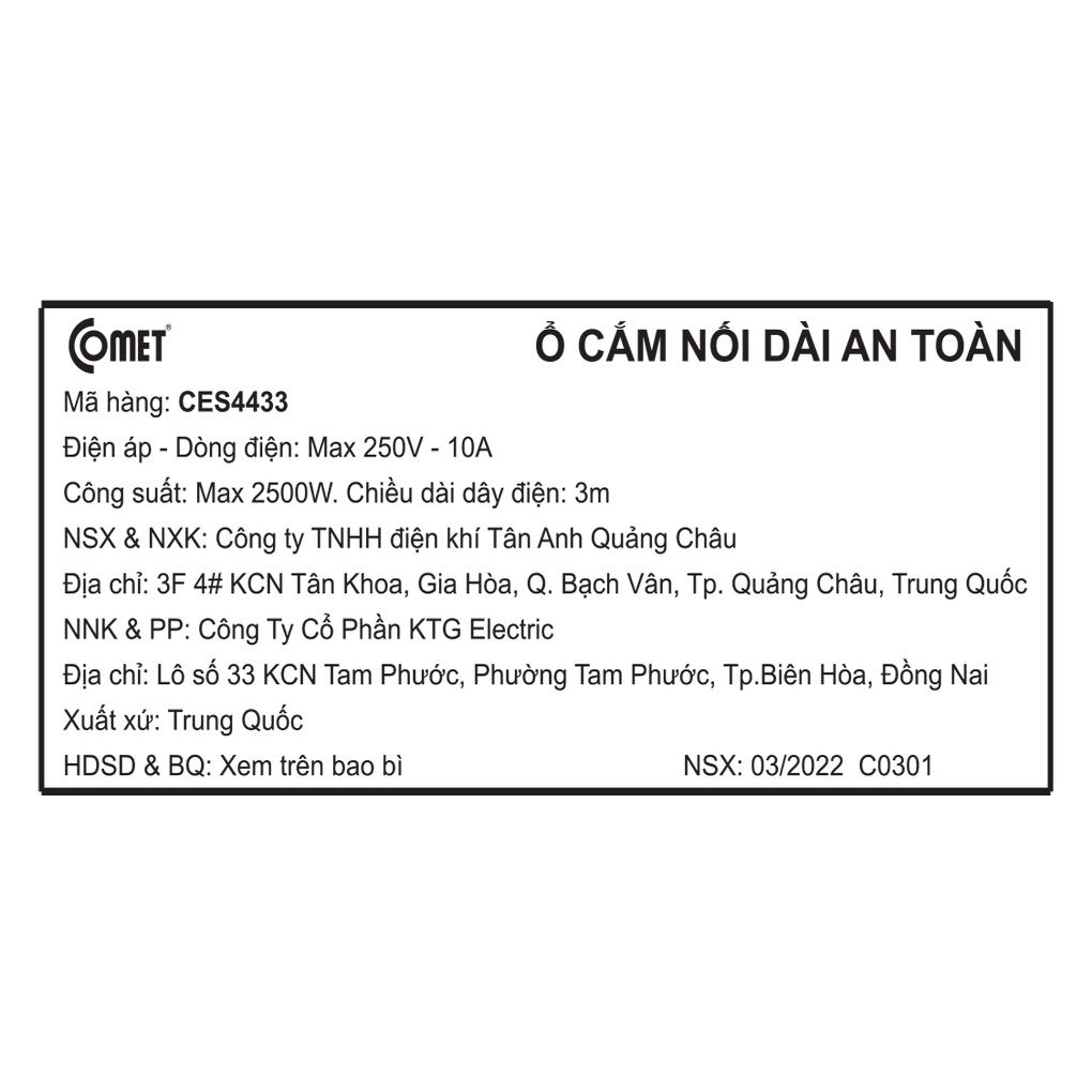Thương hiệu: Comet | Xem thêm các sản phẩm Ổ cắm điện của CometMô tả ngắn