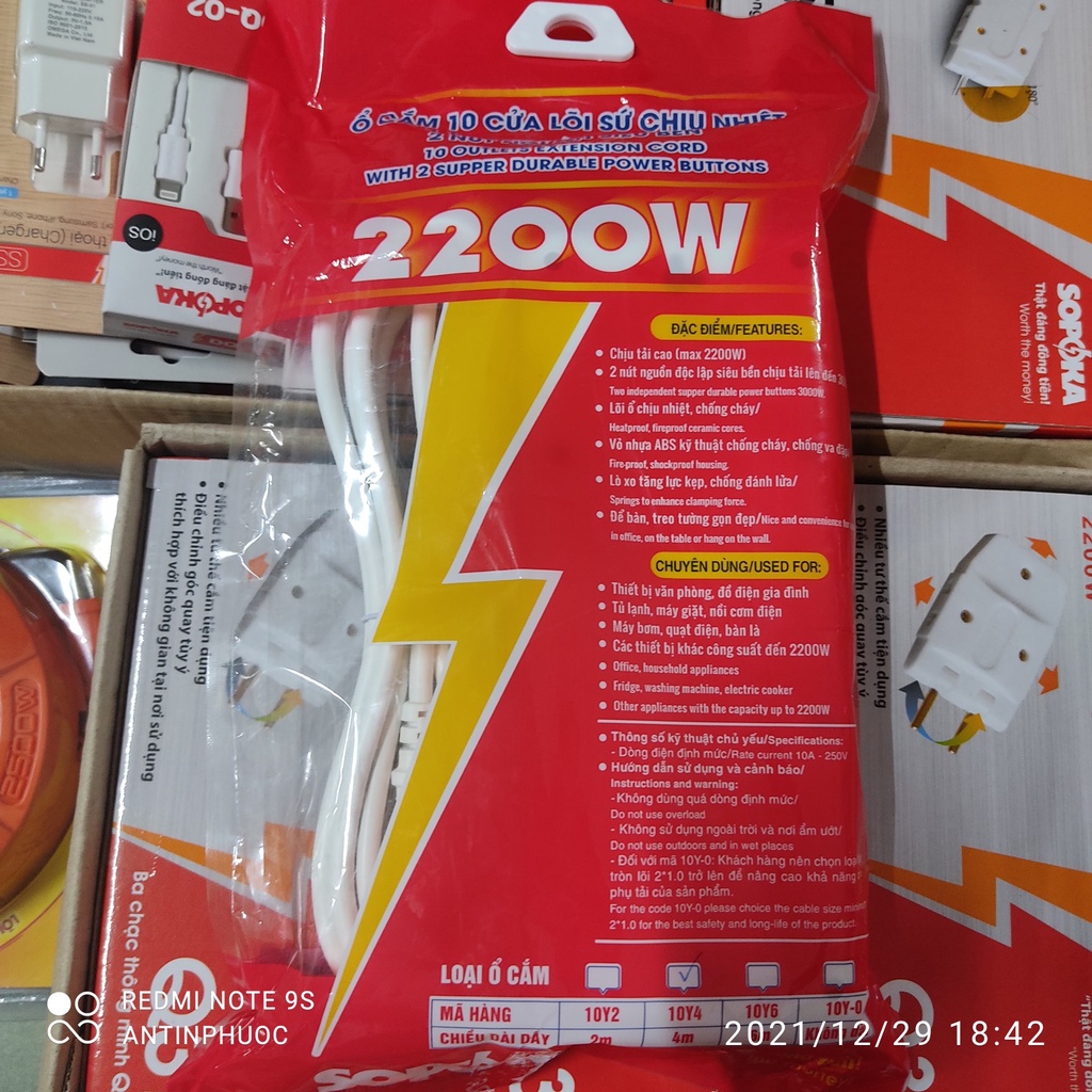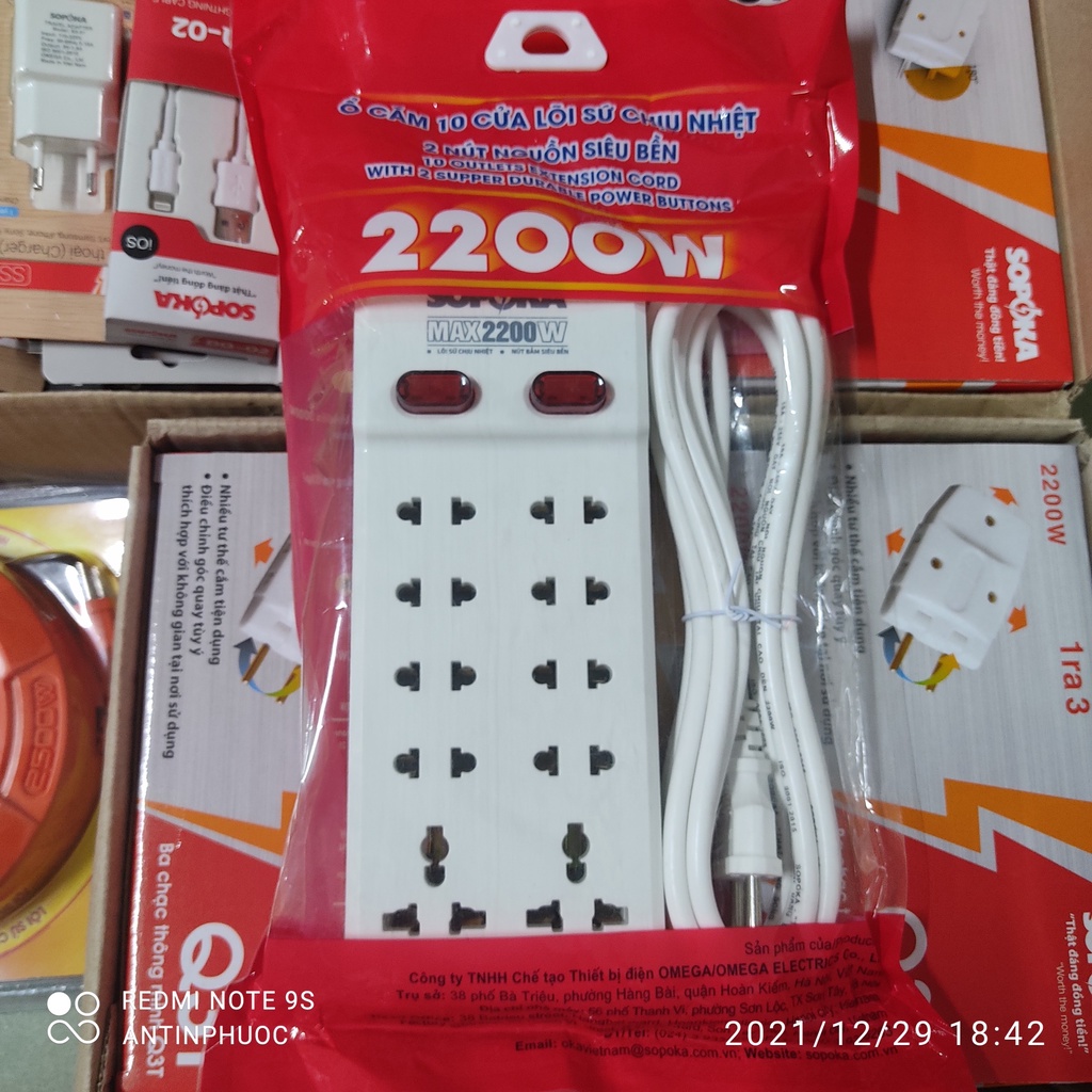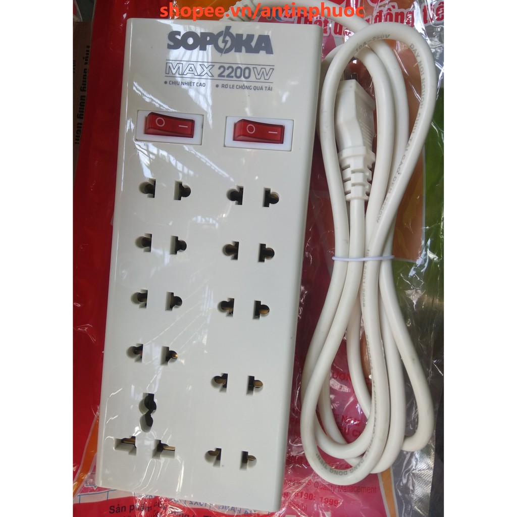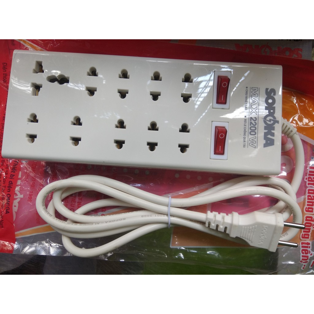 Ổ cắm điện 10 lổ - 2200w SOPOKA đáp ứng tốt nhu cầu của quý khách với khả năng chống quá tải ,cháy nổ với hình thức đẹp,tiện lợi và giá thành hợp lí .