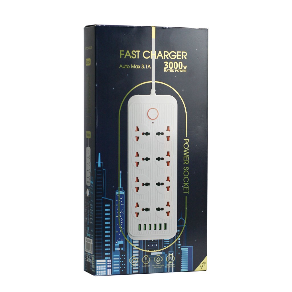 Ổ cắm điện công suất lớn, đa năng ổ cắm chịu tải 3000W, cao cấp,8 ổ cắm,6 Cổng sạc USB 3.1 A Hỗ Trợ Sạc Nhanh