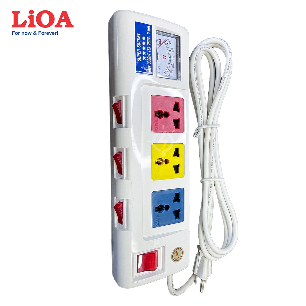 Thiết Bị Điện Gia Dụng > Mạch điện & Phụ tùng > Ổ cắm điện & Dây nối || Ổ cắm điện công suất lớn, đo công suất, cao cấp, LIOA, 3 ổ cắm, 3 công tắc, 3OFSSA2.5-2Còn hàng