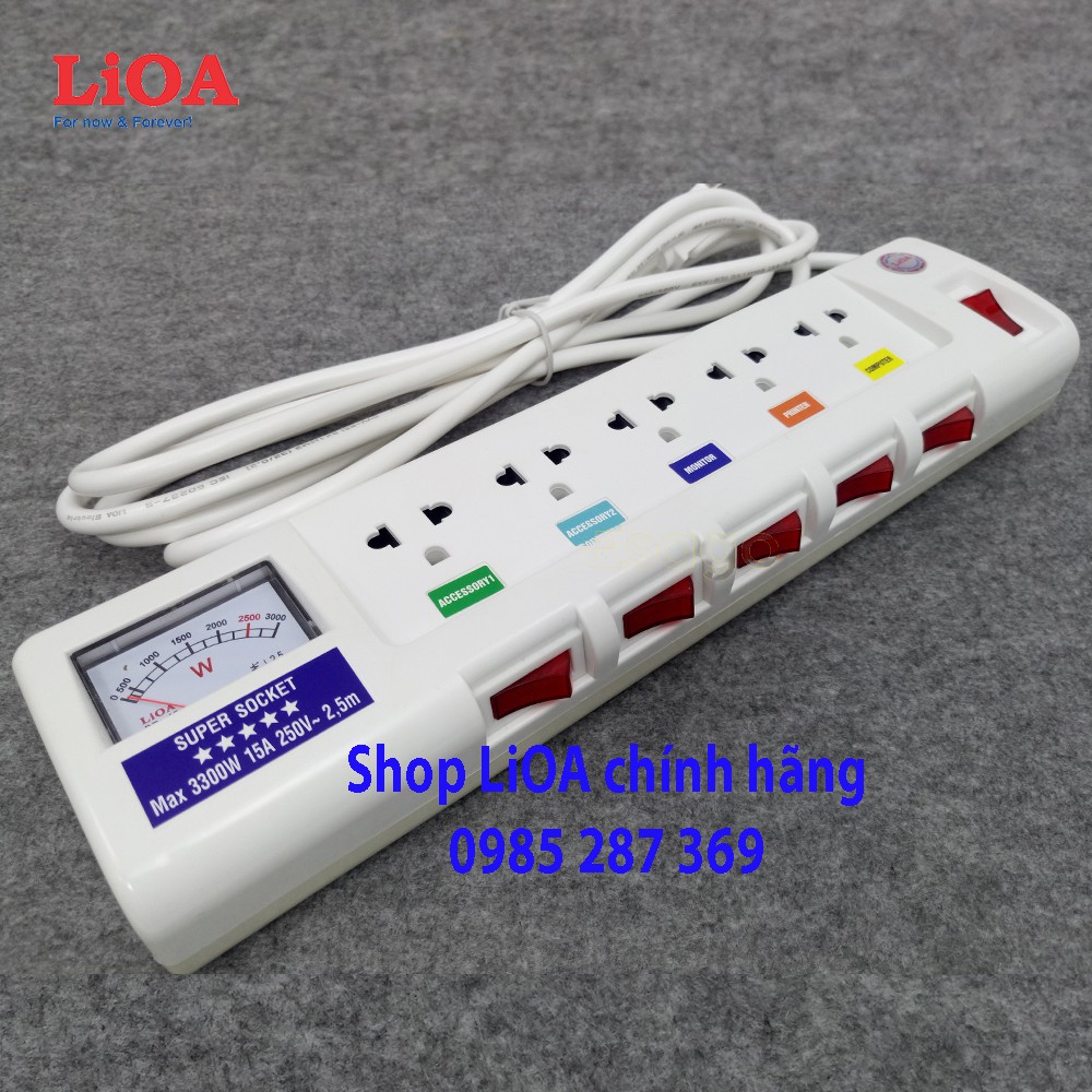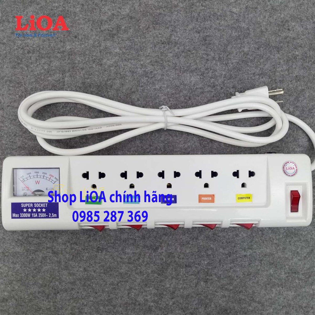 Ổ cắm điện công suất lớn LIOA 5 ổ cắm 3 lõi dây có đồng hồ báo công suất - Dòng cao cấp