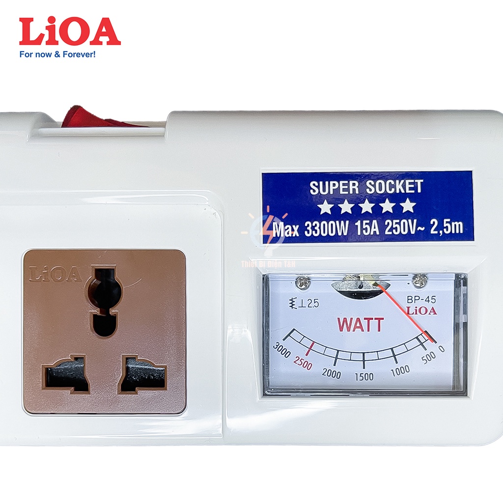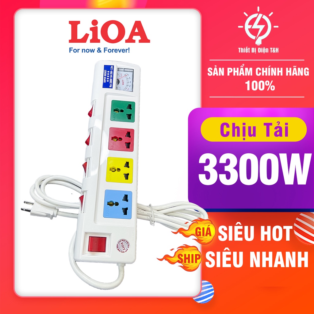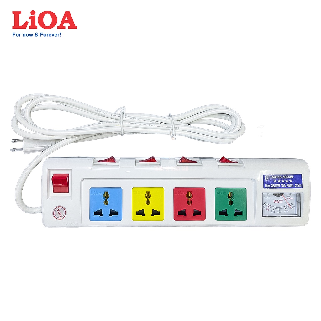 Thiết Bị Điện Gia Dụng > Mạch điện & Phụ tùng > Ổ cắm điện & Dây nối || Ổ cắm điện công suất lớn, ổ cắm chịu tải, đa năng, đo công suất, cao cấp, LIOA, 4 ổ cắm, 4 công tắc, 4OFSSA2.5-2Còn hàng