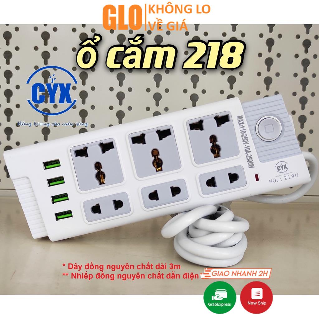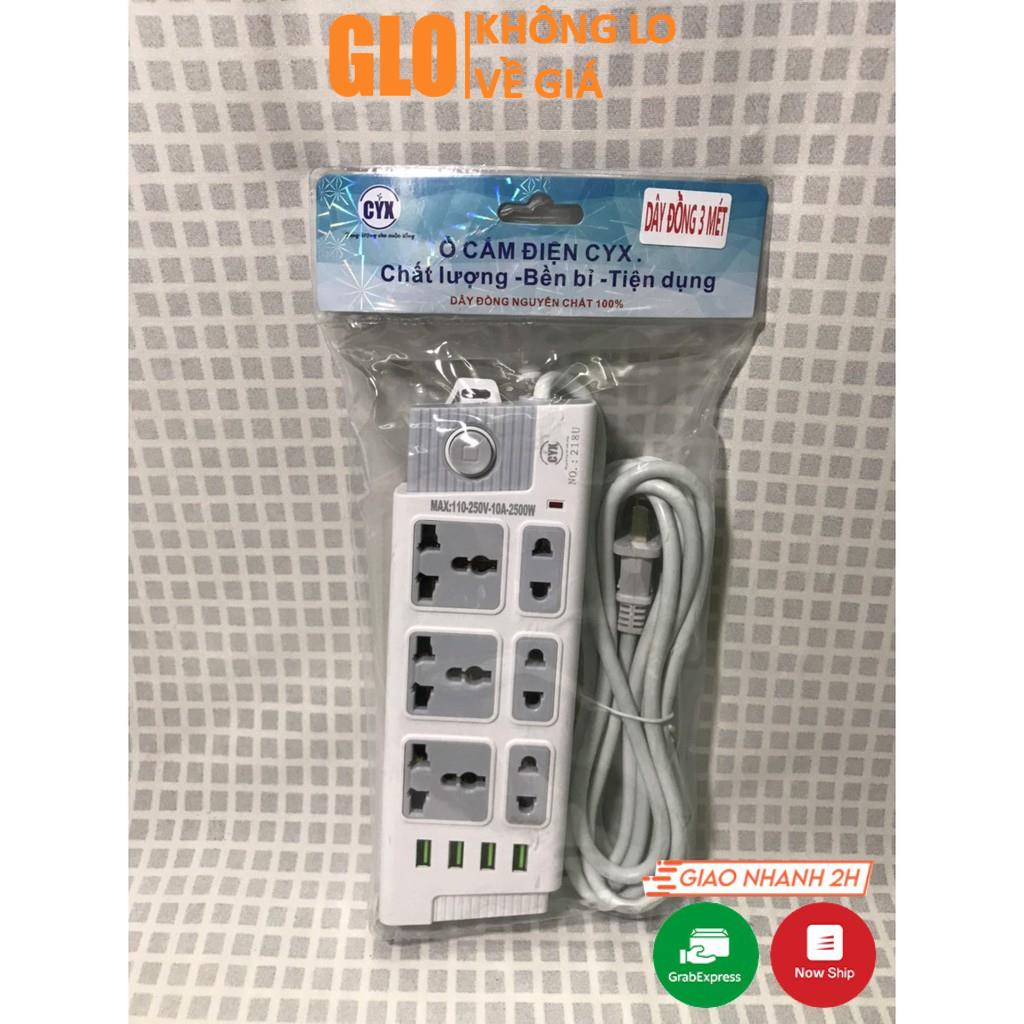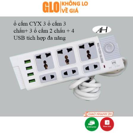 Thiết Bị Điện Gia Dụng > Mạch điện & Phụ tùng > Ổ cắm điện & Dây nối || Ổ Cắm Điện CYX 218 Dân Dụng Có 4 Cổng Usb Tích Hợp Sạc Đa Năng, 3 Ổ Cắm 3 Chấu,3 Ổ Cắm 2 Chấu Dây Dài 3M Công Suất 2500WCòn hàng