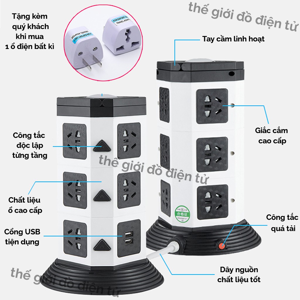 Thiết Bị Điện Gia Dụng > Mạch điện & Phụ tùng > Ổ cắm điện & Dây nối || Ổ Cắm Điện Đa Năng 2, 3 Tầng Socket 2 Cổng Usb, Ổ Điện Chụi Tải 2500W Dây Nối Dài 1,8m An Toàn Sử DụngCòn hàng