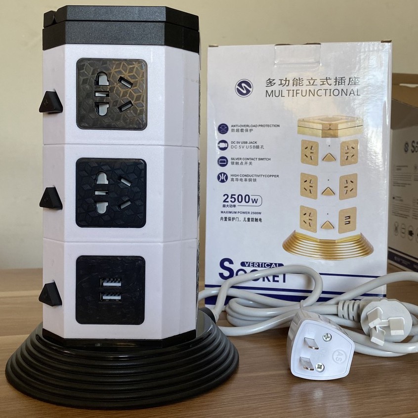 Giới thiệu Ổ Cắm Điện Đa Năng 2, 3 Tầng Socket 2 Cổng Usb, Ổ Điện Chụi Tải 2500W Dây Nối Dài 1,8m An Toàn Sử Dụng