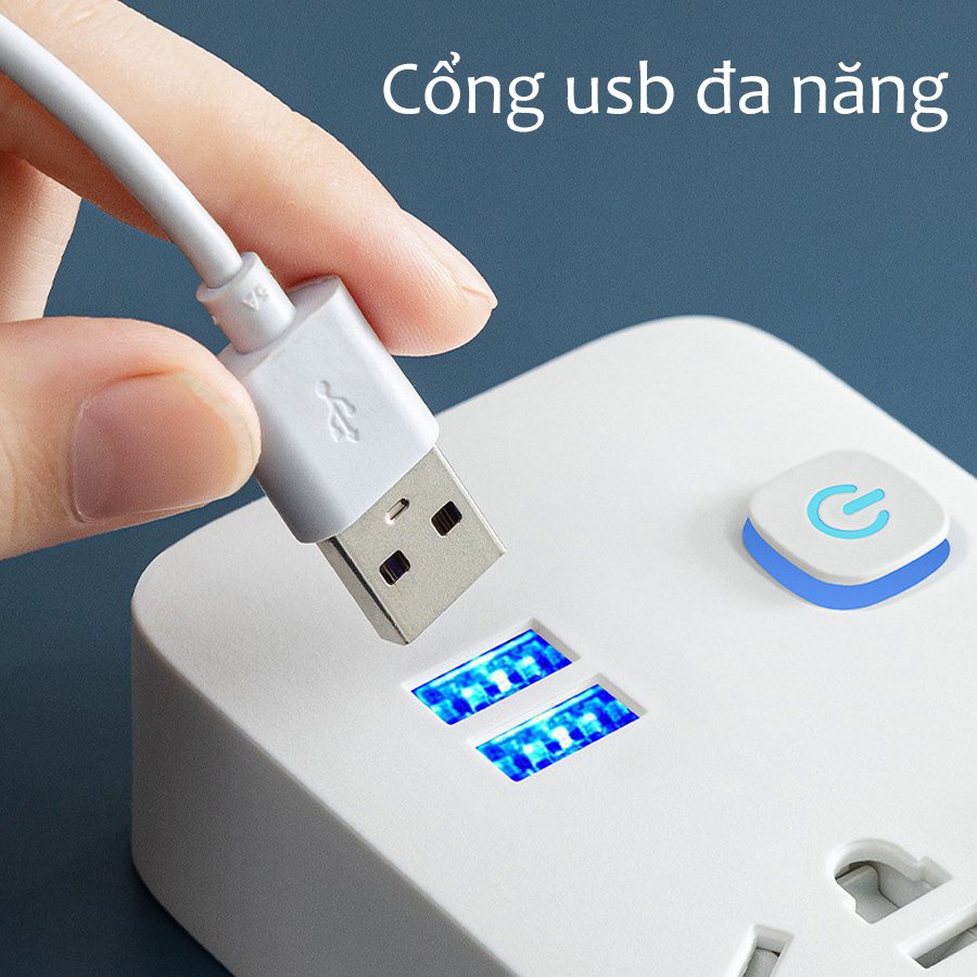 Ổ cắm điện đa năng, 2 ổ cắm USB, an toàn chống cháy chống giật.