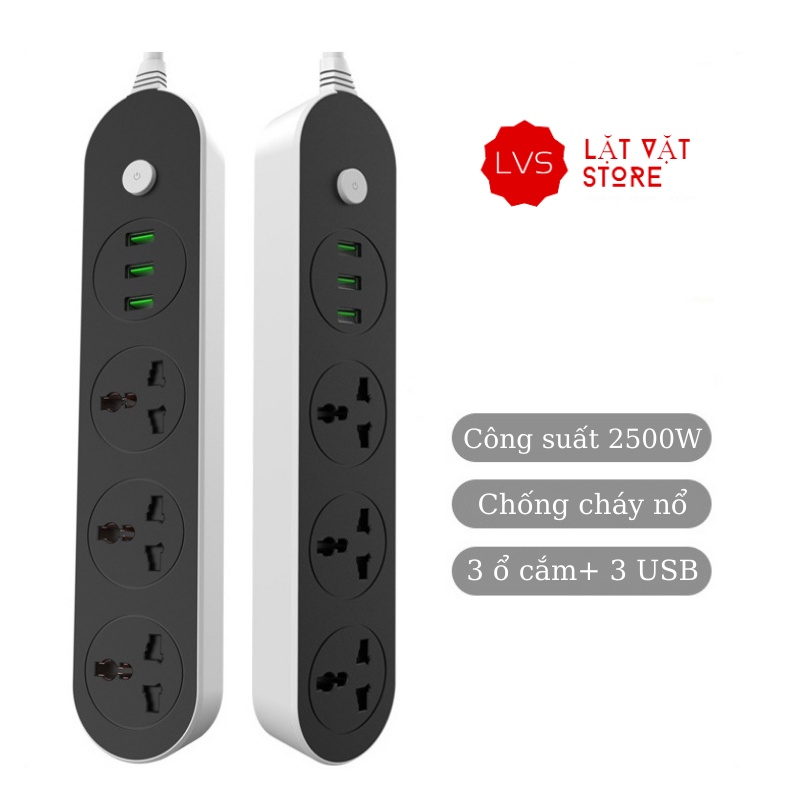 Ổ cắm điện đa năng 3 ổ cắm công suất cao chống cháy có 3 cổng USB sạc nhanh