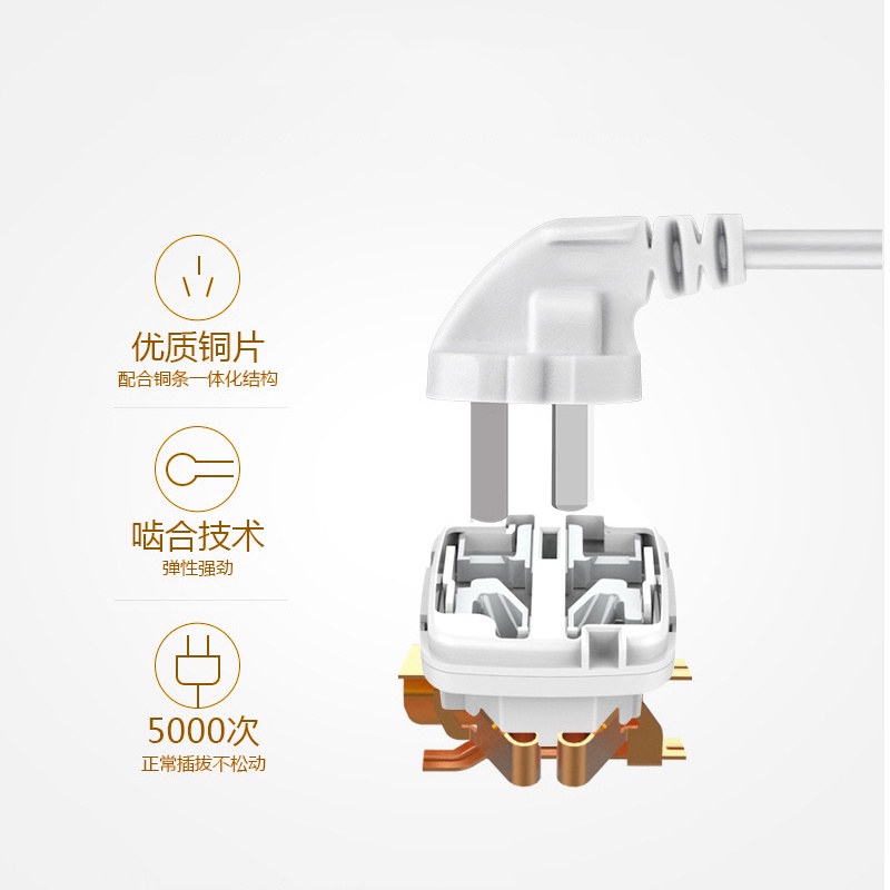 - Lõi ổ cắm làm bằng đồng chất lượng cao, tuổi thọ cao (5.000 lần cắm rút)