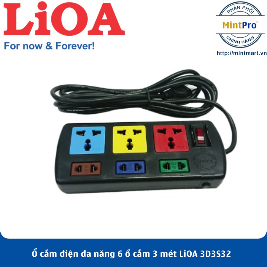 Giới thiệu Ổ cắm điện đa năng 6 ổ cắm 3 mét LiOA 3D3S32 - Hàng Chính Hãng