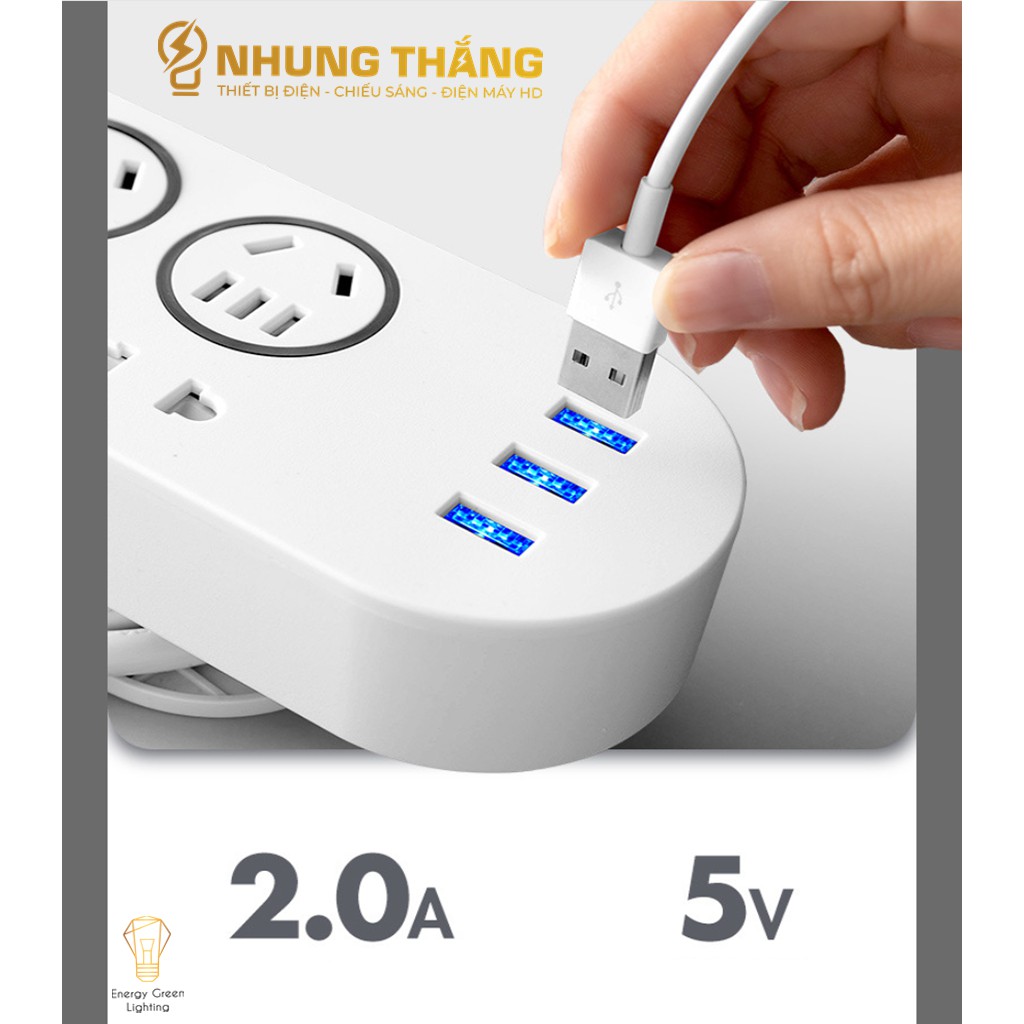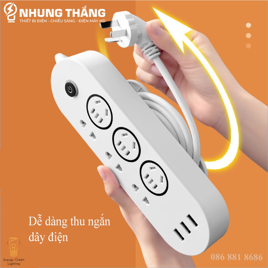 + 9 Ổ : 6 Ổ Cắm Điện - 3 Ổ Cắm USB