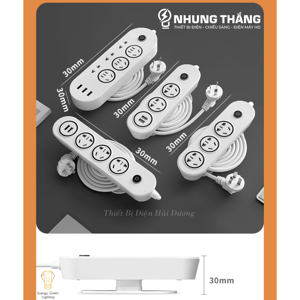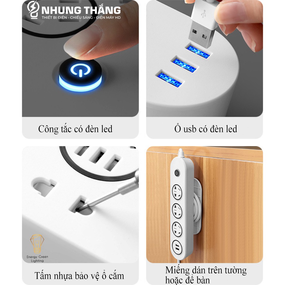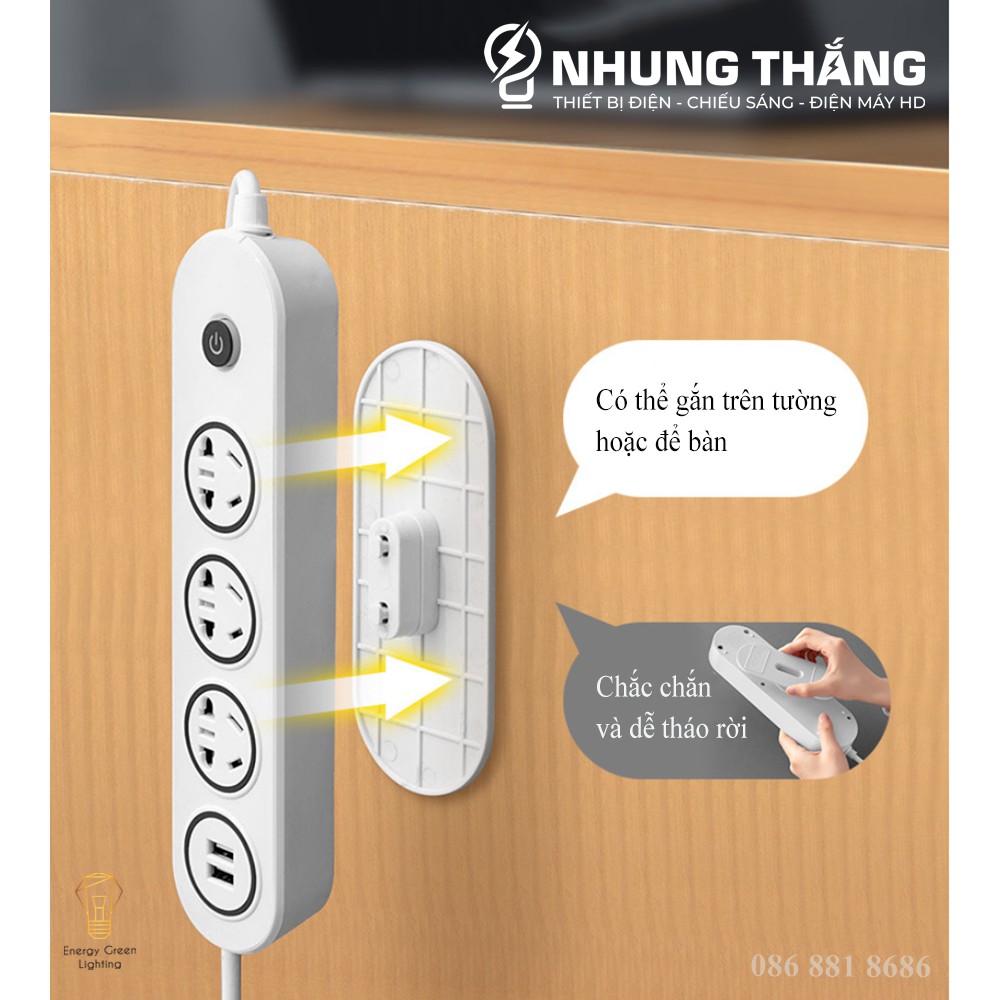 + 4 Ổ : 2 Ổ Cắm Điện - 2 Ổ Cắm USB