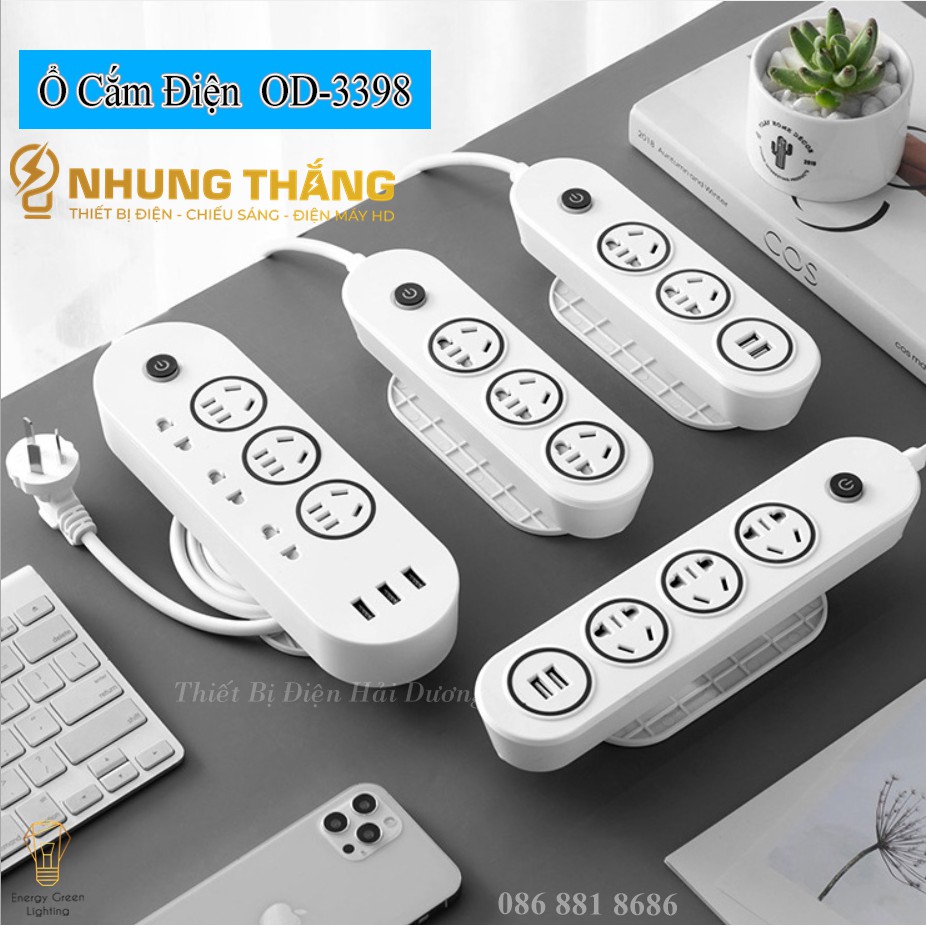 Thiết Bị Điện Gia Dụng > Mạch điện & Phụ tùng > Ổ cắm điện & Dây nối || Ổ Cắm Điện Đa Năng An Toàn Chống Giật OD-3398 - Dây Dài 2.8m - Tặng Kèm Ổ Cắm Và Miếng Dán - Bảo Hành 12 ThángCòn hàng