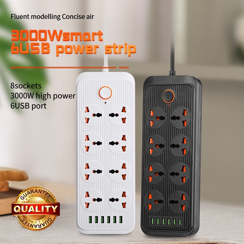 Thiết Bị Điện Gia Dụng > Mạch điện & Phụ tùng > Ổ cắm điện & Dây nối || Ổ Cắm Điện Đa Năng chịu Tải 3000W, 2 Nồi Lẩu, Nồi Chiên Không Dầu, Thiết Kế An Toàn Chống Cháy Chống Giật Có 6 Cổng USBCòn hàng