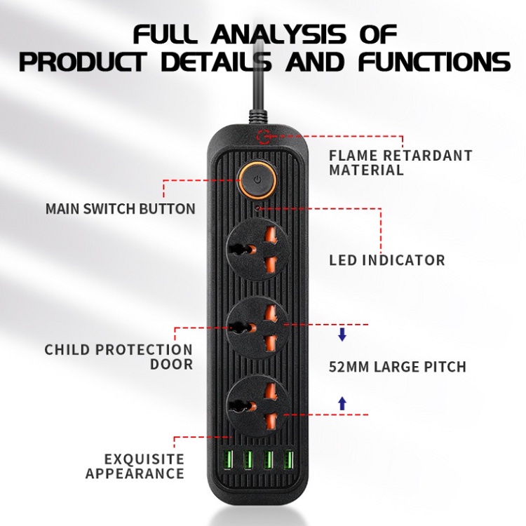 Kết hợp nhiều ổ cắm và ổ cắm USB với nhau, kích thước nhỏ gọn và gọn gàng, có thể sạc cùng lúc 7 thiết bị như điện thoại di động, máy tính bảng, máy tính xách tay, đèn, ... Thích hợp cho phòng ngủ, phòng ăn hoặc văn phòng sử dụng.