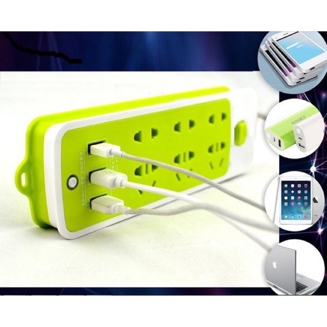 Thiết Bị Điện Gia Dụng > Mạch điện & Phụ tùng > Ổ cắm điện & Dây nối || Ổ Cắm Điện Đa Năng Chống Giật 6 Ổ Cắm và 3 Cổng USB Màu Xanh Tiện Dụng Cho Gia Đình, An Toàn Khi Sử DụngCòn hàng