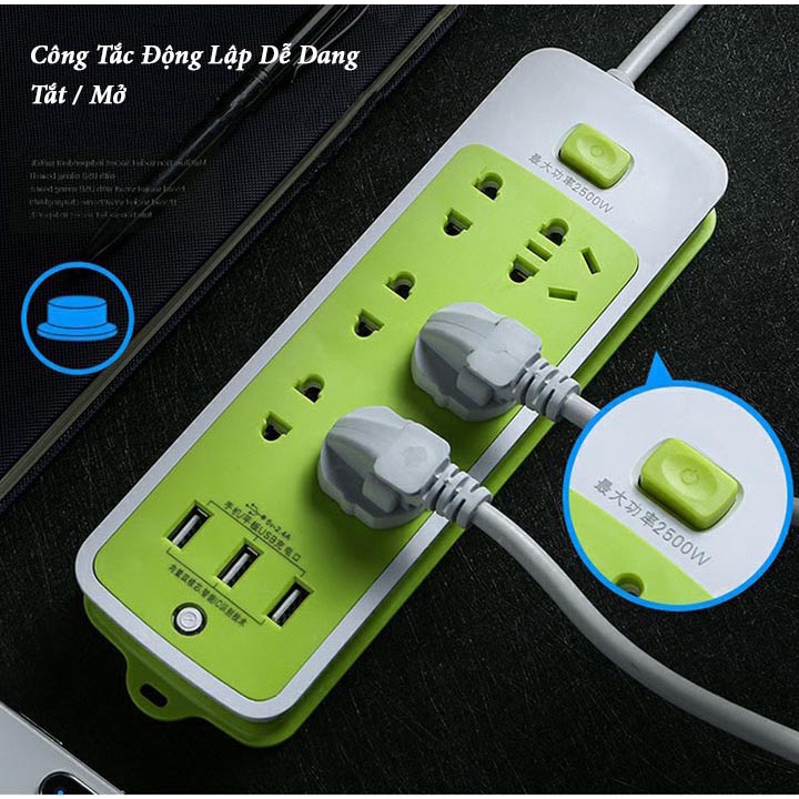 Thiết Bị Điện Gia Dụng > Mạch điện & Phụ tùng > Ổ cắm điện & Dây nối || Ổ Cắm Điện Đa Năng Chống Giật 6 Ổ Cắm Và 3 Cổng USB An Toàn Sử DụngCòn hàng