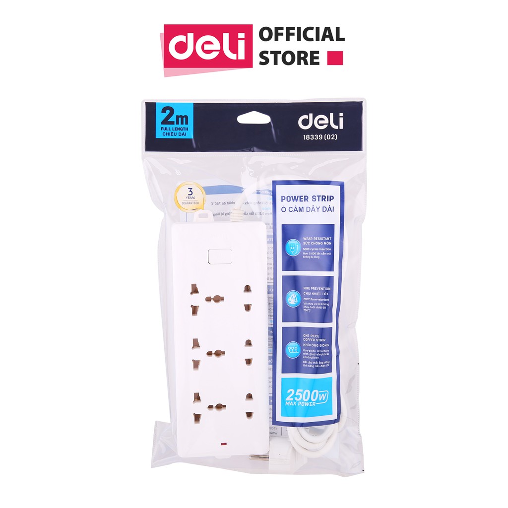 Thiết Bị Điện Gia Dụng > Mạch điện & Phụ tùng > Ổ cắm điện & Dây nối || Ổ cắm điện đa năng chống giật, chống cháy DELI - 6 cổng-2,3 chấu, có công tắc - 2m/3m/5m - E18339-02/E18339-03/E18339-05Còn hàng