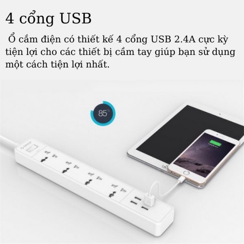 Thiết Bị Điện Gia Dụng > Mạch điện & Phụ tùng > Ổ cắm điện & Dây nối || Ổ Cắm Điện Đa Năng Chống Giật Orico Ổ Điện 2500W Tích Hợp 4 Cổng Sạc USB 5V-2.4A - Bảo Hành 12 ThángCòn hàng