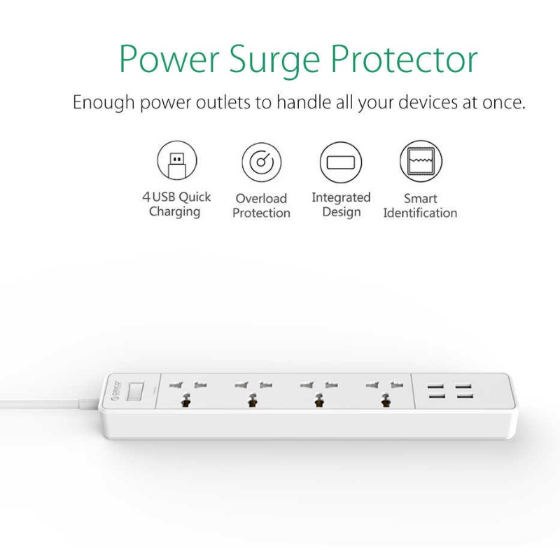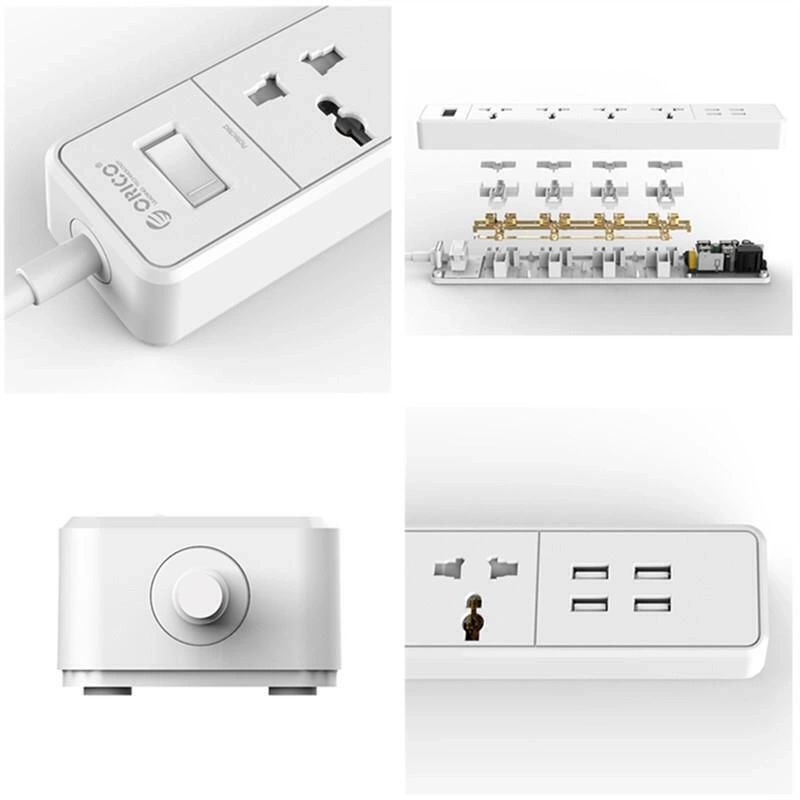 - Ổ Cắm Điện Orico OSC-4A4U-UN có thiết kế hiện đại,màu sắc trang nhã với 4 ổ cắm, 1 công tắc tiện dụng cho bạn - cắm điện và di chuyển trong phòng.
