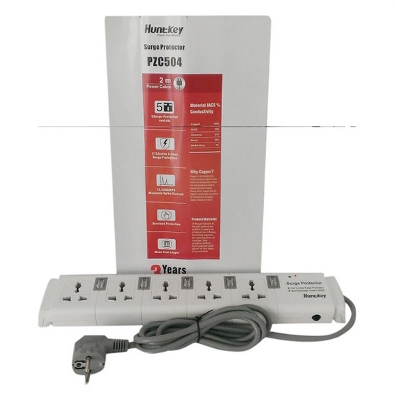 Thiết Bị Điện Gia Dụng > Mạch điện & Phụ tùng > Ổ cắm điện & Dây nối || Ổ Cắm Điện Đa Năng Chống Sét Huntkey PZC504 - Hàng Chính HãngCòn hàng
