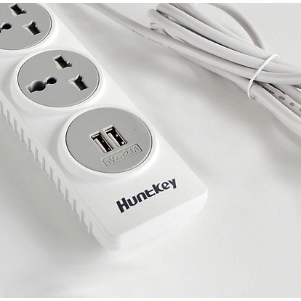 Thiết Bị Điện Gia Dụng > Mạch điện & Phụ tùng > Ổ cắm điện & Dây nối || Ổ cắm điện đa năng chống sét HUNTKEY SZN-507 (2.1A) chiều dài 3mCòn hàng