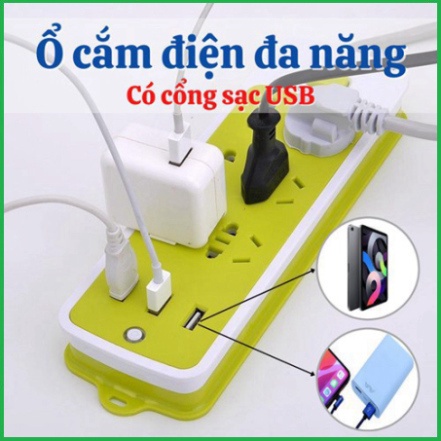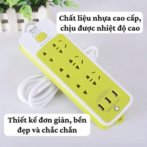 Ổ cắm điện đa năng có cổng usb chống giật 6 ổ cắm và 3 cổng USB, ổ cắm điện đa năng thông minh