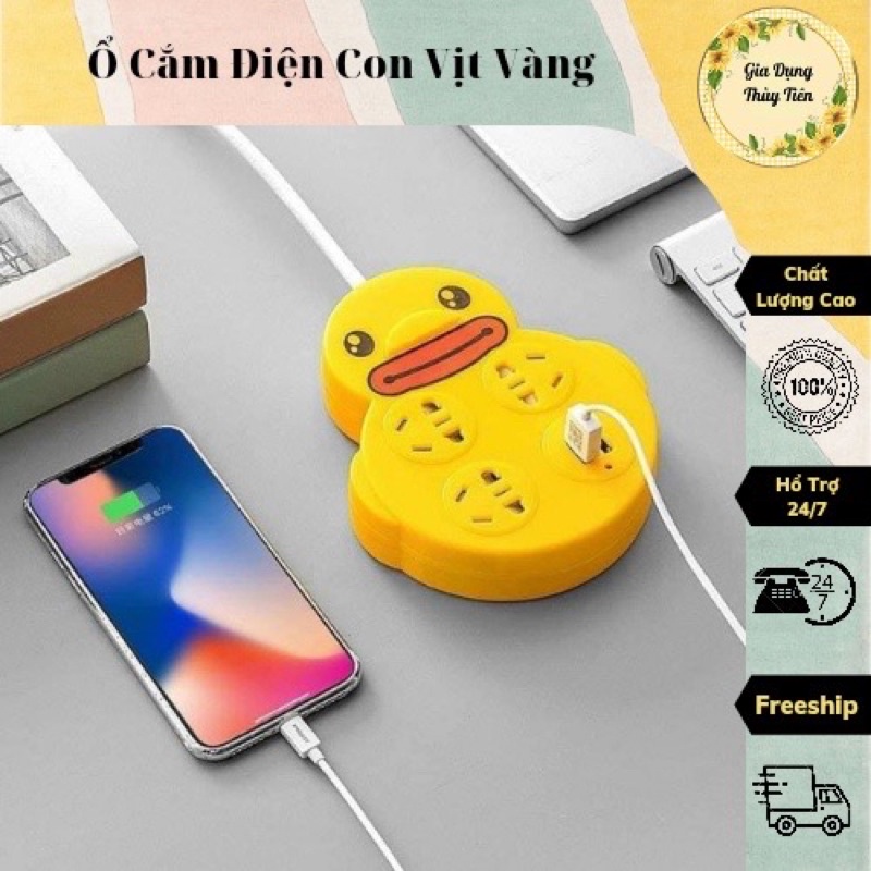 Thiết Bị Điện Gia Dụng > Mạch điện & Phụ tùng > Ổ cắm điện & Dây nối || Ổ cắm điện đa năng có cổng USB hình con vịt vàng tiện lợiCòn hàng